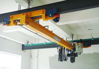 Suspensi crane dapat digantung di I beam orbit pada bagian atas lokakarya, dengan kantilever dari0,5-1 m panjangnya. Flensa yang hoist listrik berjalan sepanjang lebih rendah dari I baja dari gelagar untuk mencapai artikel pemangangkat, menampilkan struktur cekatan dan sangat mudah instalasi dan pemeliharaan. Hal ini banyak dipakai pada tempat-tempat seperti lokakarya, gedung, dan meter saham. Berikut ini aksesoris pada suspension crane :
